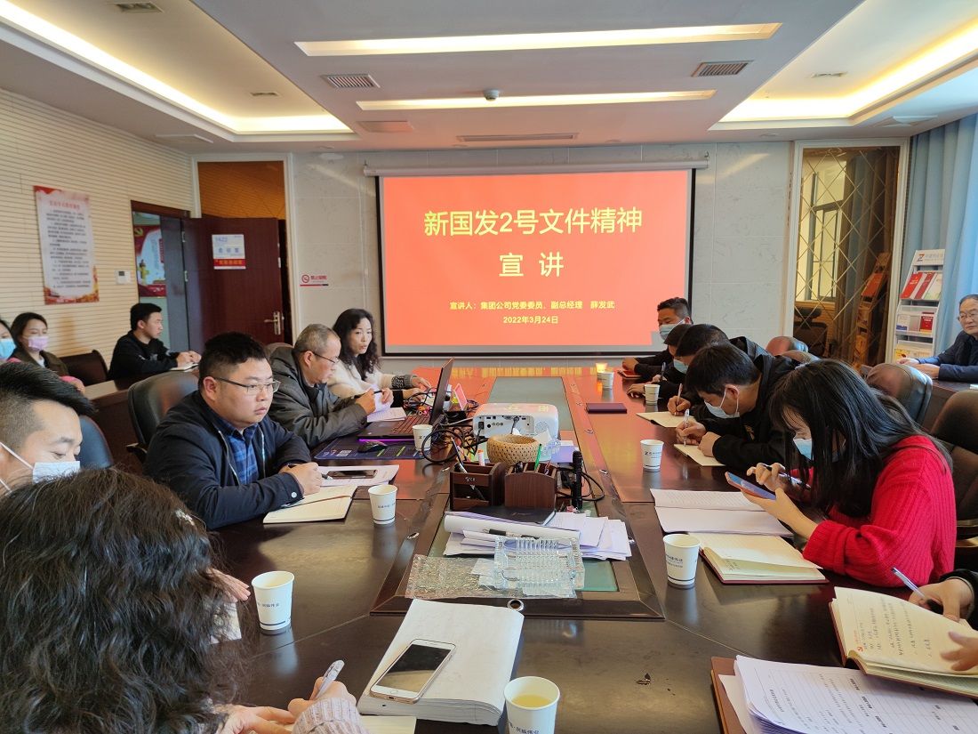 會議指出,學(xué)習(xí)宣傳貫徹落實新國發(fā)2號文件,是集團公司和各黨支部當(dāng)前和今后一個時期的重大政治任務(wù),大家要深刻認識新國發(fā)2號文件的重大意義,搶抓新國發(fā)2號文件的重大機遇,找準(zhǔn)業(yè)務(wù)的突破口,積極推動集團公司高質(zhì)量發(fā)展。
