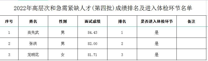 附件:2022年高層次和急需緊缺人才(第四批)面試成績(jī)排名及進(jìn)入體檢環(huán)節(jié)名單