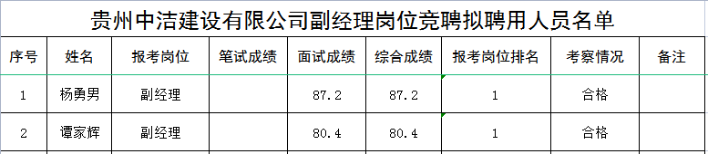 附件:貴州中潔建設(shè)有限公司副經(jīng)理崗位競聘擬聘用人員名單