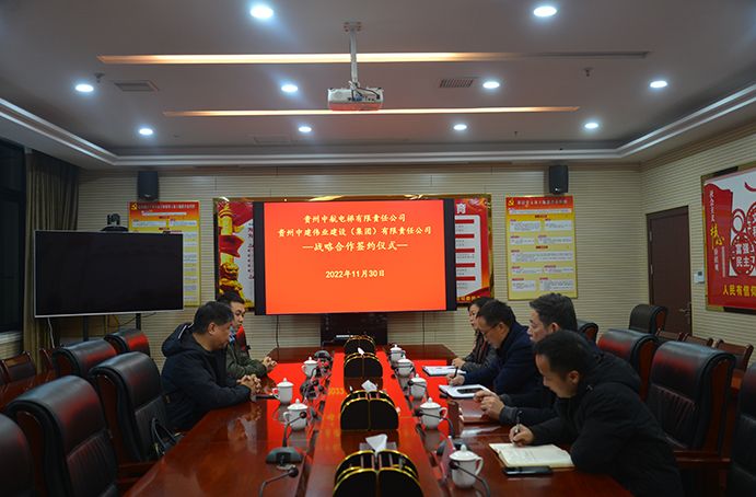 2022年11月30日,貴州中建偉業(yè)建設(shè)(集團(tuán))有限責(zé)任公司黨委副書記、總經(jīng)理馮安翔,在集團(tuán)公司17樓會(huì)議室熱情接待貴州中航電梯有限責(zé)任公司黨委書記、董事長胡明一行,并簽署戰(zhàn)略合作框架協(xié)議。集團(tuán)公司黨委副書記王莉,黨委委員、副總經(jīng)理王引明出席簽約儀式。