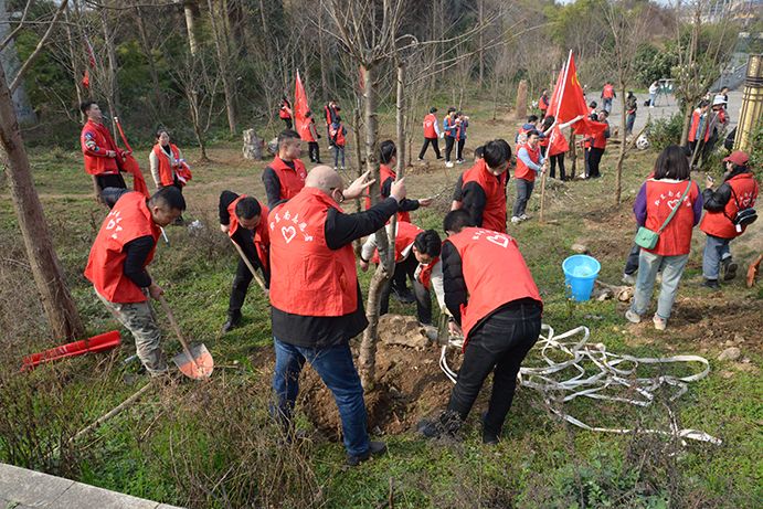 活動現(xiàn)場紅旗飄飄,大家的熱情空前高漲,一片熱火朝天的植樹景象映入眼簾。團委副書記楊紹燦帶領集團公司青年團員分頭行動、明確分工。搬樹入坑、栽植、覆土、澆水,每一步步驟都有條不紊的進行,在大家的共同努力下,本次的植樹活動取得了圓滿成功。
